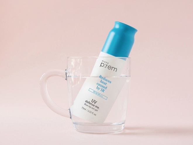 UV Defense Me. Blue Ray Sun Gel SPF 50+ PA++++ của thương hiệu Hàn Quốc Make p:rem có đặc điểm nổi bật là làm mát đáng kể bề mặt da đến 4,7 độ. Ngoài ra, gel chống nắng này có kết cấu dạng nước, được truyền với tinh chất dưỡng ẩm 68% nhằm giữ ẩm và giúp làn da dẻo dai cho một ngày dài. Không những vậy, thành phần tự nhiên như rau má, lá bạc hà... vừa bảo vệ, vừa làm dịu da. Bên cạnh đó, nhà sản xuất khuyên người dùng nên thoa sản phẩm 420.000 đồng ngay sau bước cuối cùng của quy trình chăm sóc da hoặc dùng làm lớp primer trước khi trang điểm. Ảnh: Gramho.