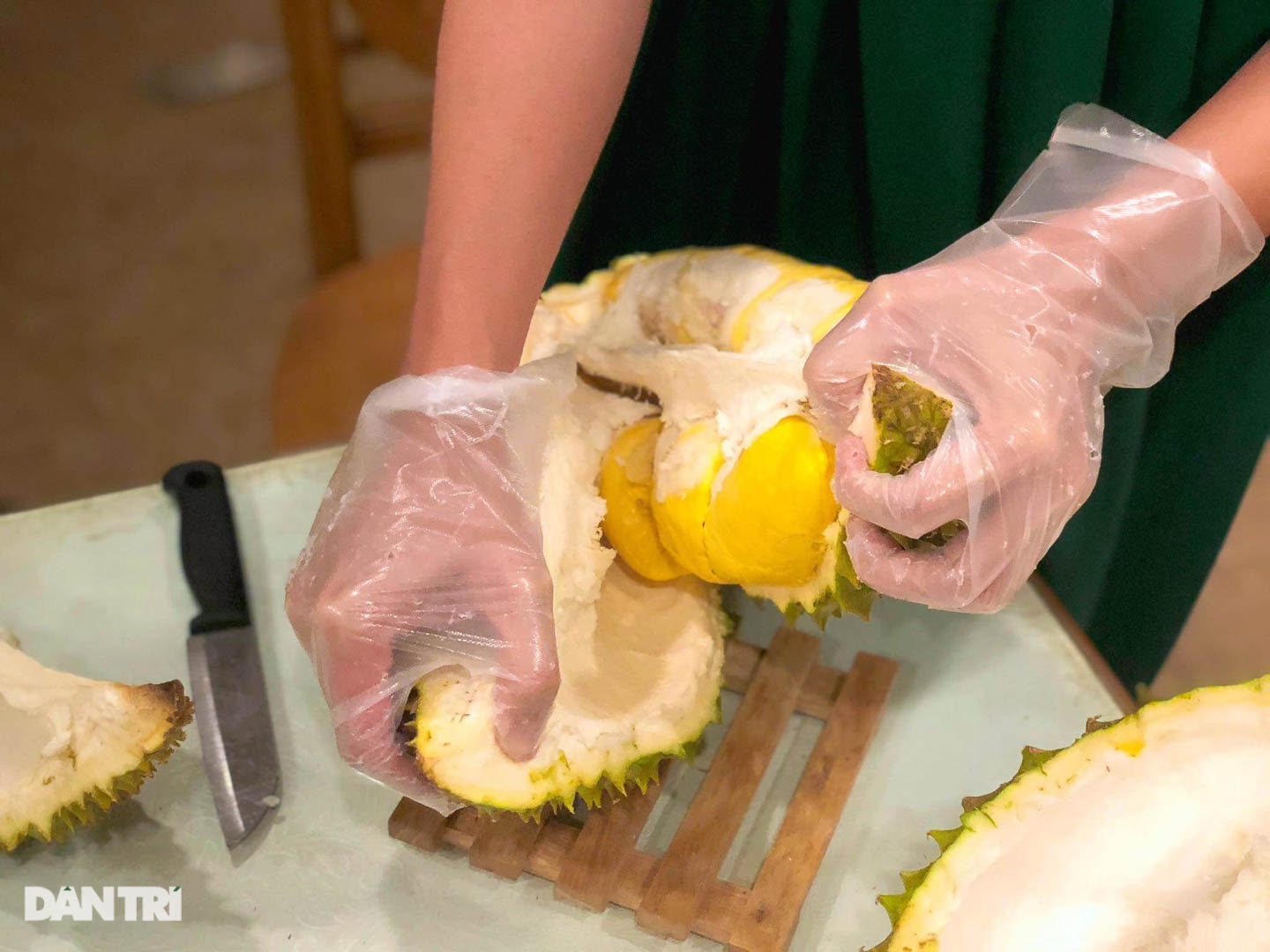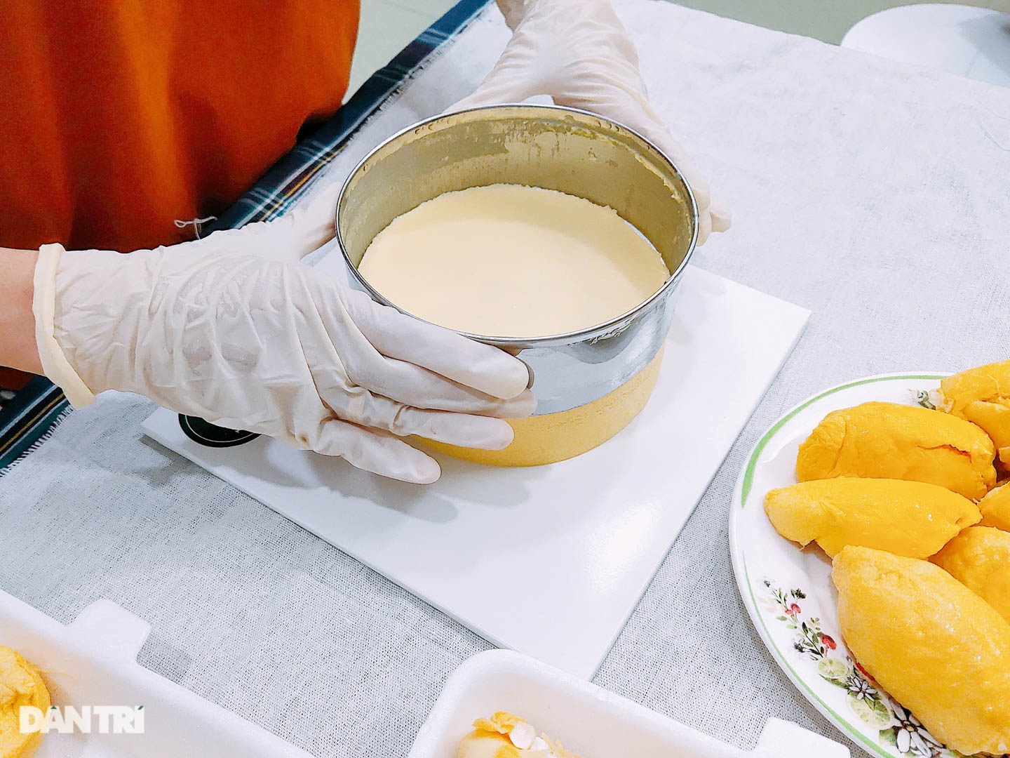 "Mình tham khảo cách làm của bên Thái, tuy nhiên, điều chỉnh lại độ ngọt sao cho phù hợp với khẩu vị khách hàng Việt. Mình thay sầu riêng Thái bằng sầu riêng Ri6. Loại sầu này có cơm vàng, béo, mềm hơi khác với sầu Thái - nhỏ, chắc", anh Hiệp cho biết.