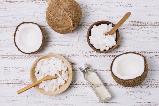 Dầu dừa: Dầu dừa chứa nhiều axit lauric có khả năng ức chế hắc tố melanin, đồng thời cung cấp dưỡng chất giúp làn da của bạn khỏe hơn. Massage một vài giọt dầu dừa lên vùng da sạm màu của bạn. Sau 15 phút, rửa bằng nước ấm và xà phòng nhẹ. Vì sự lành tính và an toàn của dầu dừa, bạn có thể sử dụng chúng hàng ngày để cải thiện sắc tố da nhanh chóng. Ngoài trị thâm các vùng da sạm màu, dầu dừa còn có khả năng dưỡng tóc và mi mắt. Ảnh: freepik.